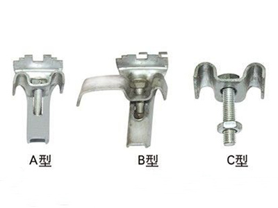 C型:由一塊帶雙鉤的上壓板和一支可焊接在支撐構(gòu)件上的M8的六角頭螺栓組成。